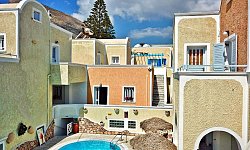 Η παραλία απέχει 50 μέτρα και η στάση των λεωφορείων βρίσκεται σε απόσταση 20 μέτρων. Το αεροδρόμιο είναι 4 χλμ, το λιμάνι 9 χλμ και η πρωτεύουσα, τα Φηρά, 8χλμ. Σε όλα τα διαμερίσματα και στους κοινόχρηστους χώρους παρέχεται δωρεάν Wi-Fi.