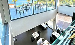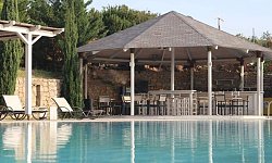 Δίπλα στη ρεσεψιόν θα βρείτε ένα μπαρ όπου μπορείτε να απολαύσετε τη θέα στη θάλασσα ενώ ακριβώς κάτω από το μπαρ βρίσκεται το εστιατόριο όπου σερβίρεται πρωινό, μεσημεριανό και βραδινό. Το εστιατόριο βρίσκεται στο ίδιο επίπεδο με την πισίνα 220 τμ. Υπάρχει επίσης παιδική πισίνα με ξαπλώστρες και ομπρέλες για χαλάρωση. Το Thalassa Hotel διαθέτει επίσης έναν όμορφο κήπο 10.000 τμ γεμάτο λουλούδια και δέντρα που περιβάλλουν το ακίνητο.